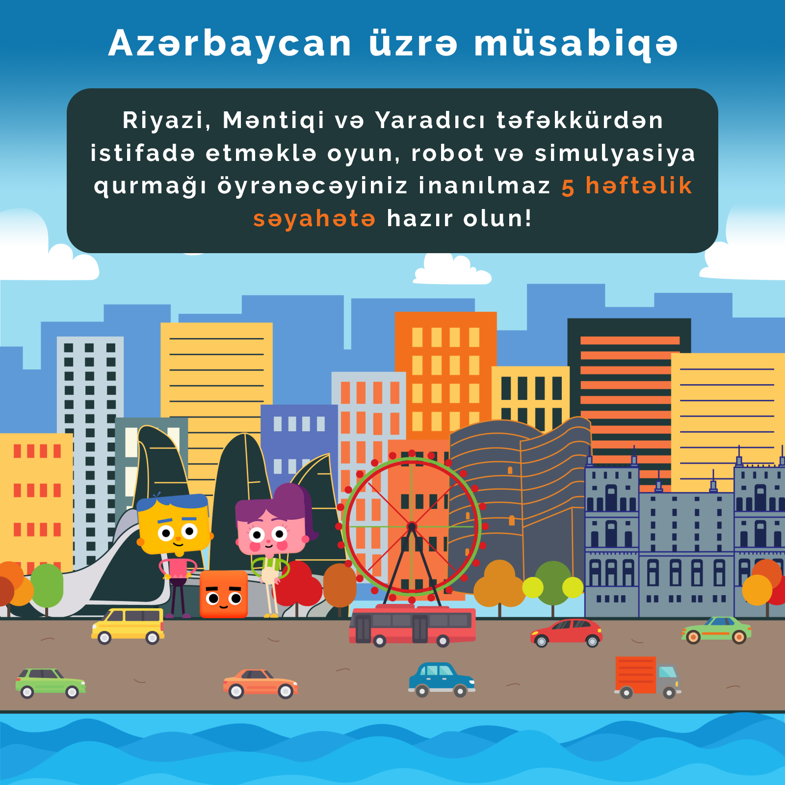 Rəsm, blok və mətn əsaslı proqramlaşdırma; Xəritə üzərində hərəkət Labirintlər; Robotların üzgüçülüyü Sphero; SUMO robotları; Robotlar futbol meydançasında; Sphero ilə rəssamlıq; Rəqəmsal dünyada incəsənət; Bowling; Golf; Körpülər; Maşın yarışı; Şərti ifa